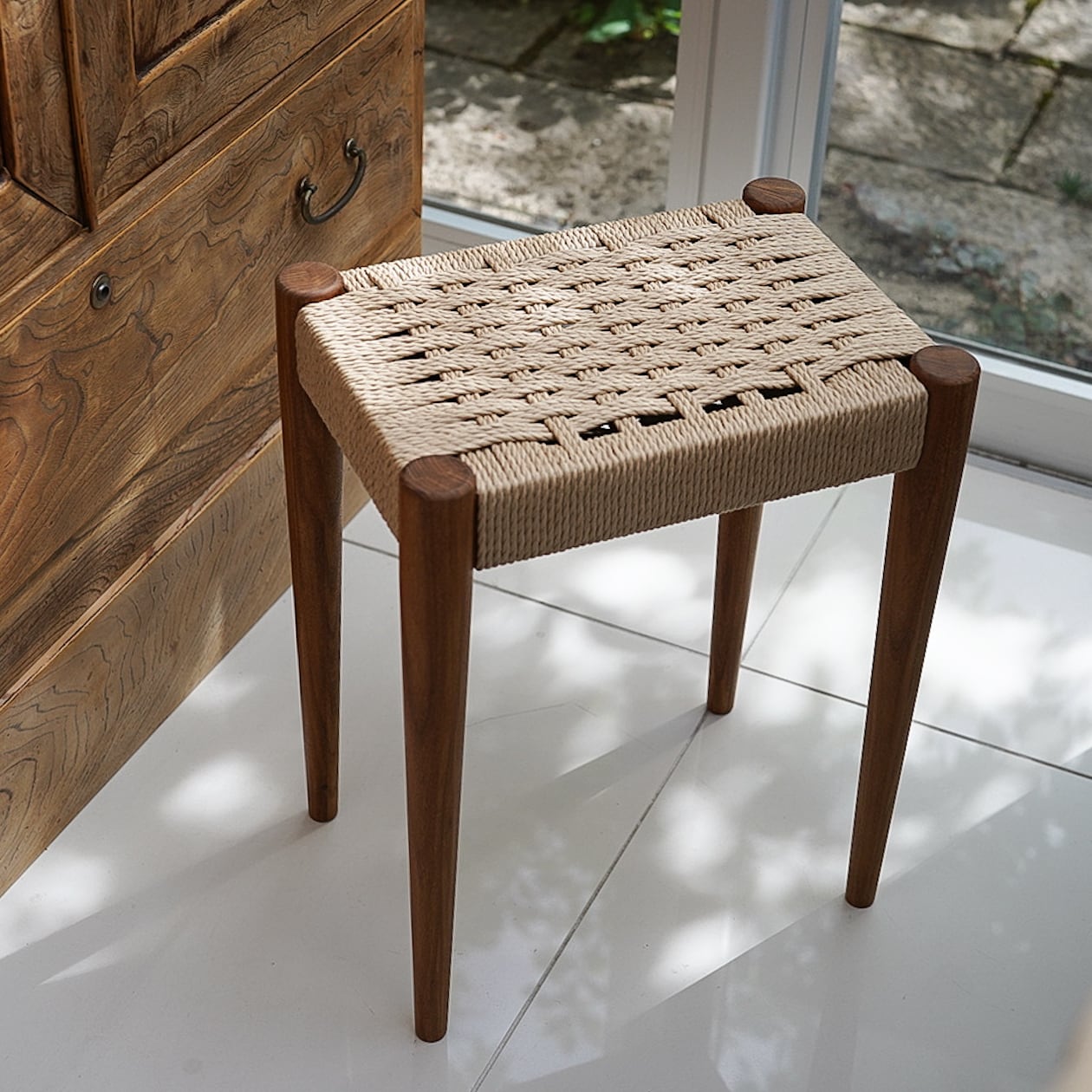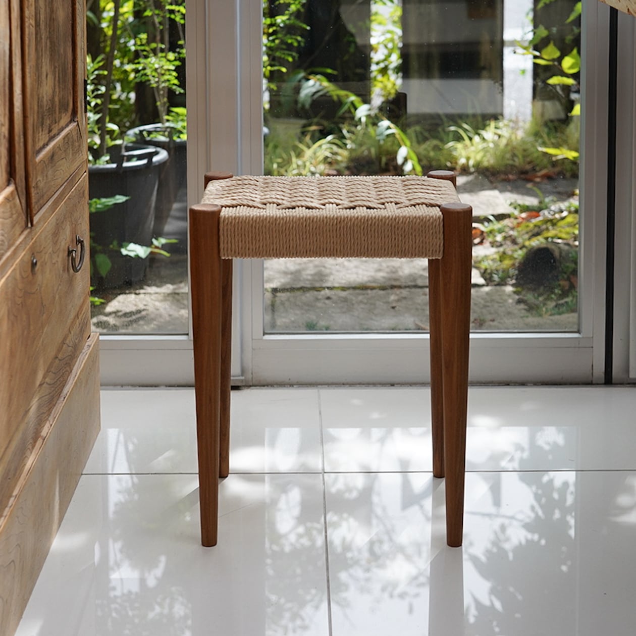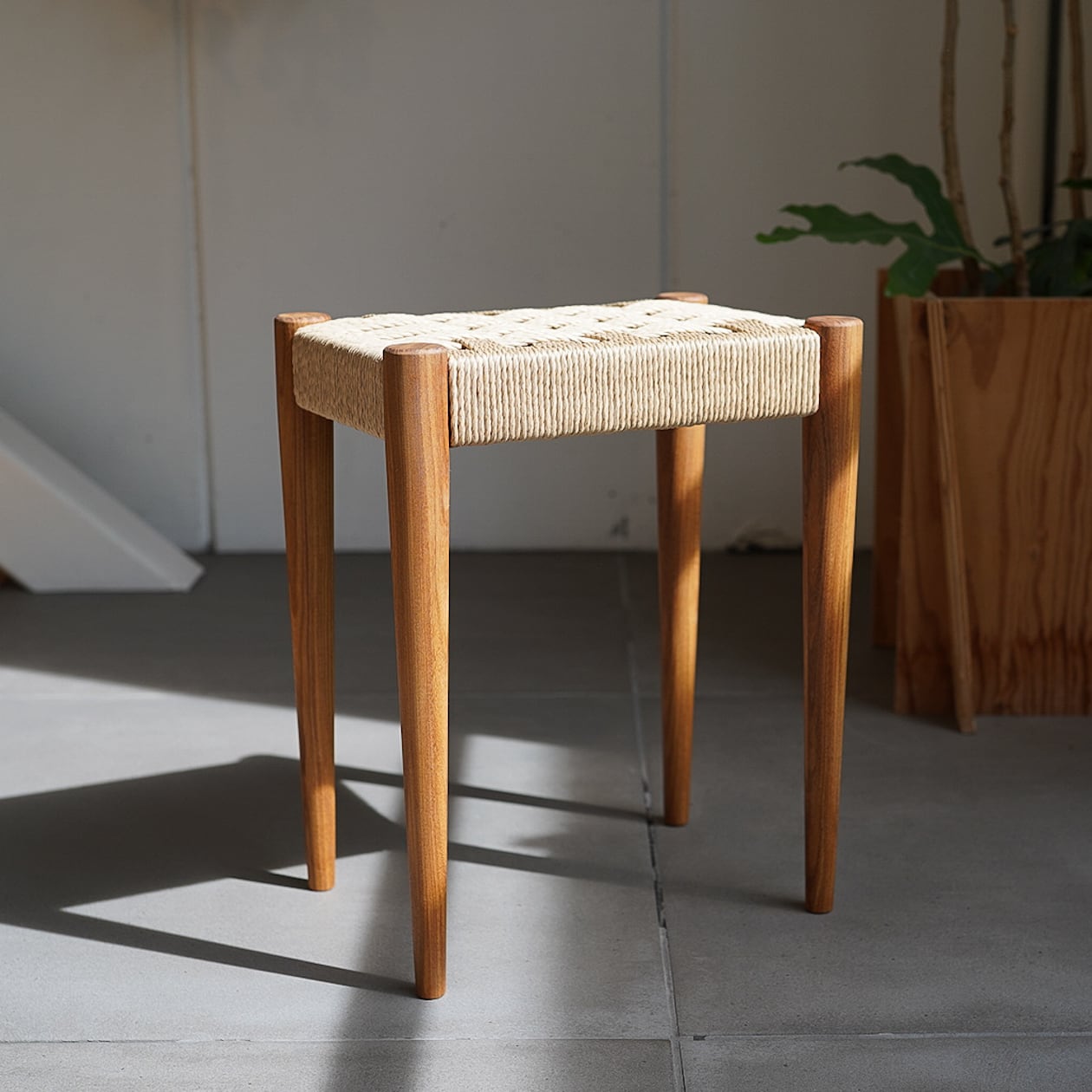 チーク材を使った座枠に座面をペーパーコードで編んだ、どこかしらノスタルジックなSTOOL。