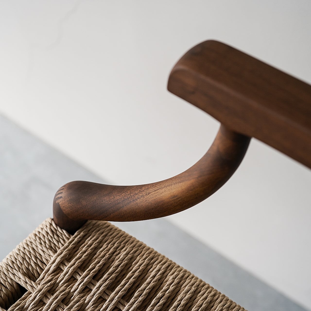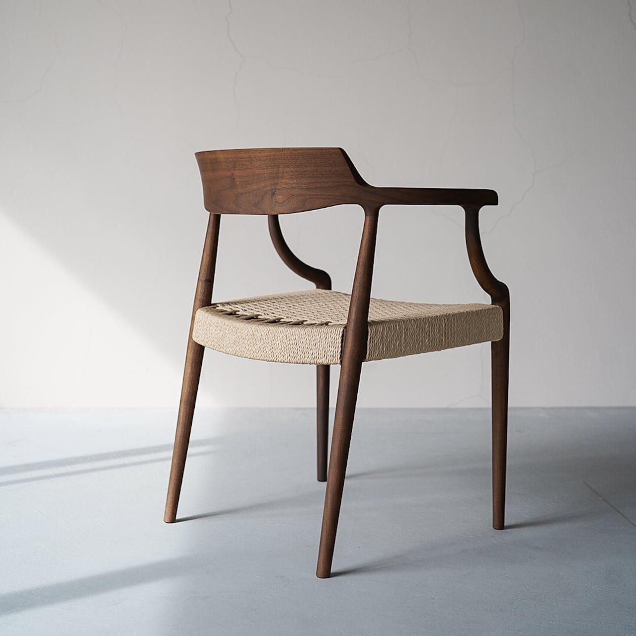 ウォールナットの柔らかな曲線フレームに、カノコ編みのペーパーコードを組み合わせた、新作のホルム ペーパーコードチェア。