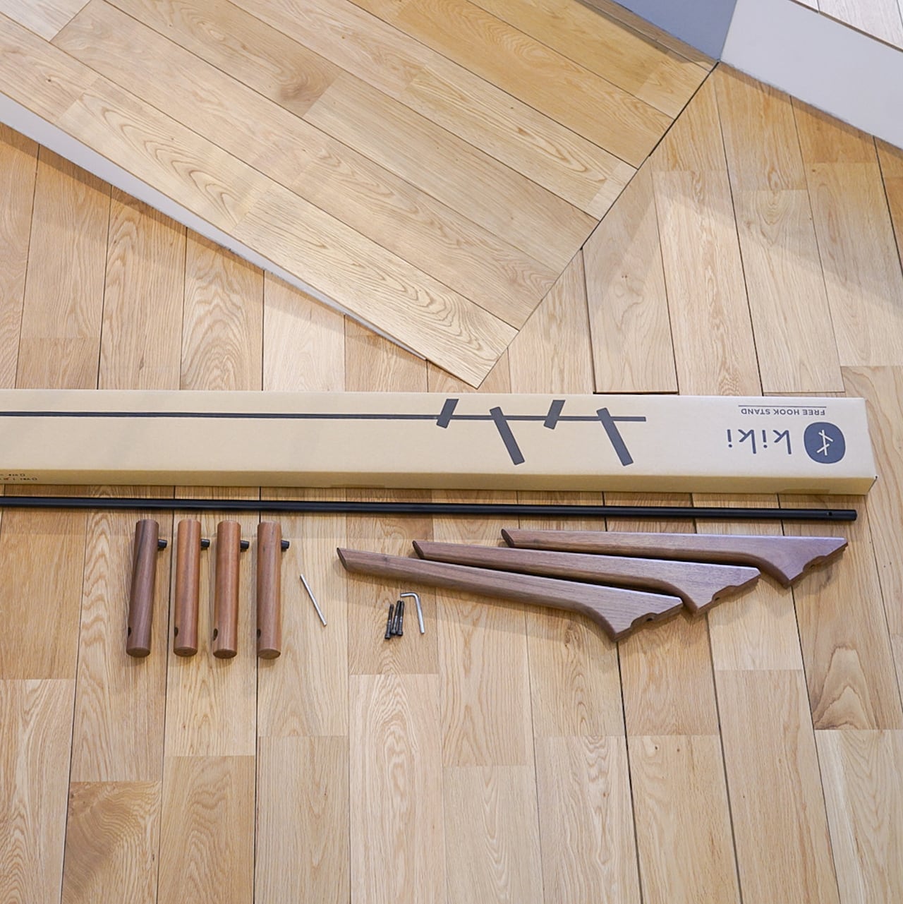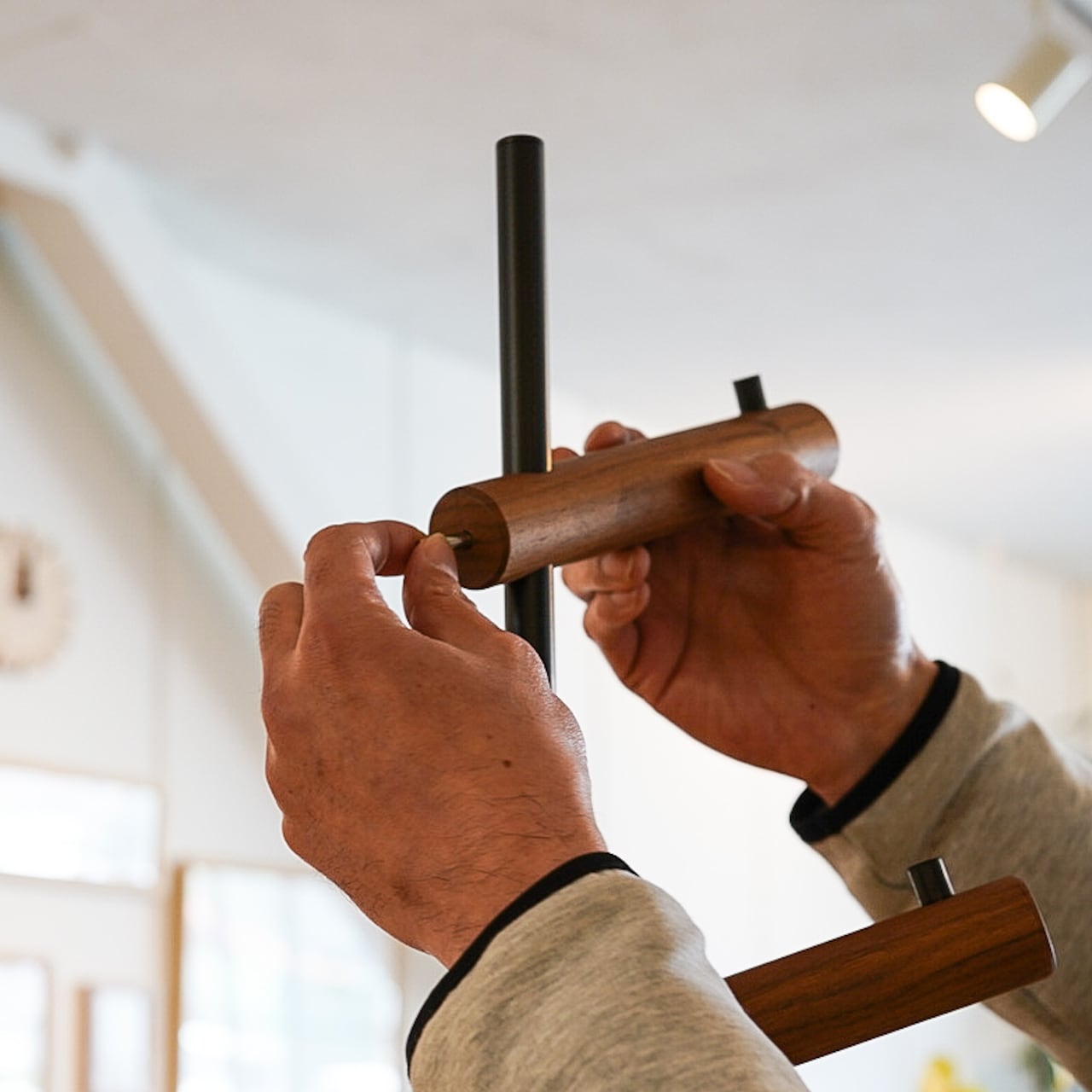 スタンド:鉄 フック:ウォールナット材・オーク材・ブラックチェリー材